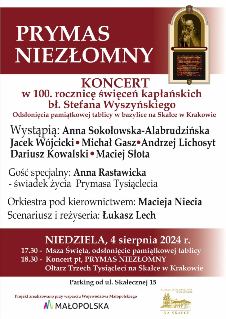 Zaproszenie na niezwykły koncert – Paulini i Małopolska w hołdzie bł. kard. Stefanowi Wyszyńskiemu